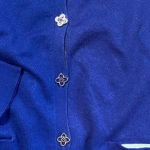 Lovely sweater! wore once. In beautiful condition. 100%Pima cotton cardigan. Two toned pockets. Pretty flowers buttons.