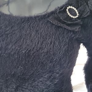 Blk..3/4 sleeves bow w/ broach at rounded neckline