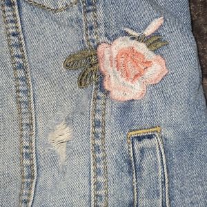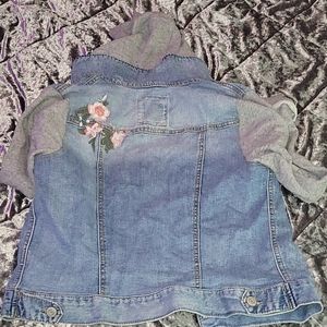 Jean jacket with soft material sleeves