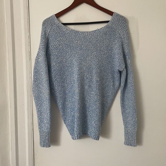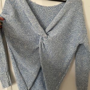 Knit, open/cross-backed sweater. Gently worn, always folded, never hung, so no stretching of the fabric.