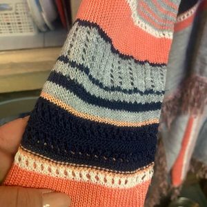 This pink, blue and white sweater is adorable and the few times I wore it I got compliments. Looks great with jeans and boots. Fit is more like xl / 1x Thanks for looking!