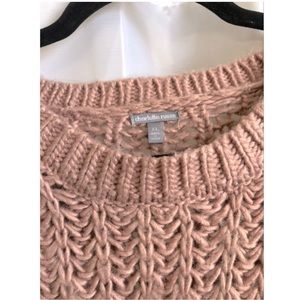 Cute pink sweater! Worn a couple of times in good condition. Has been in storage for awhile. No stains or holes (aside from the holes in the sweater itself haha). Size XL. Comes from a smoke free home :) thanks
