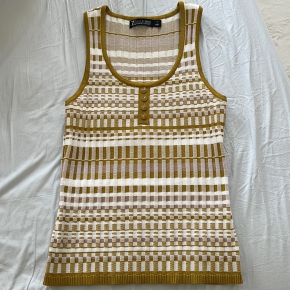 Sweater, sleeveless. 3 colors White, gold, and tan.