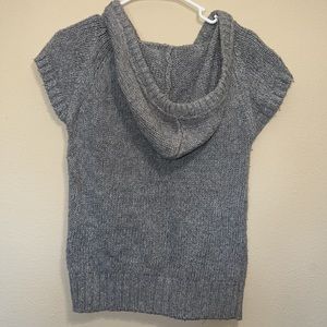 Sleeveless hooded sweater perfect for layering. Matches with just about any color or patter. Light gray making it the perfect neutral color.
