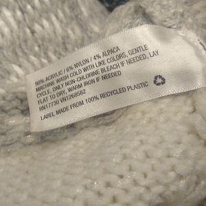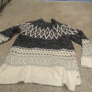 This crew neck cozy sweater will keep you warm and stylish. Zero snags or stains. Wear it with a black or grey or cream or red turtleneck for a splash of color and double warmth. It hangs a bit longer in the back to cover the backside of you. Great with boots and leggings!