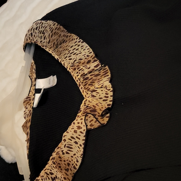here we have a long sleeve black sweater. Very comfortable and stylish with a nice pair of jeans. size large