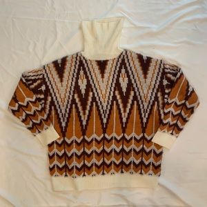 Burgundy burnt orange cream sweater chevron Aztec type print