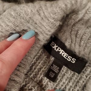 Express super soft eyelash sweater, crop, mock neck, gray