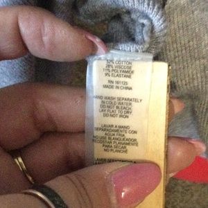 Great gray sweater. Warm for the cooler days. Long sleeve. Slight bat sleeve. Fits more like a large.