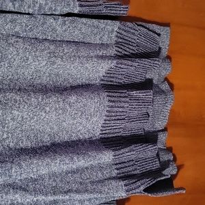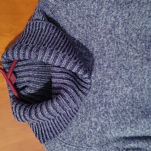 Cute tunic turtleneck sweater with side slits. 60% cotton, 40% rayon. The turtleneck, bottom hem and wrist hems in darker shade of blue.