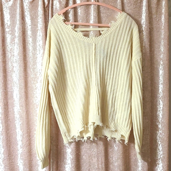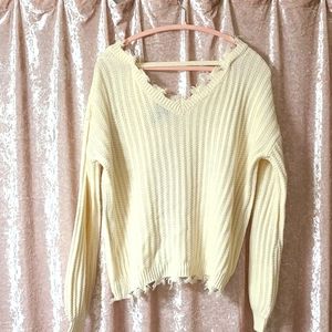 Off white sweater, fringe color and hem, size XS