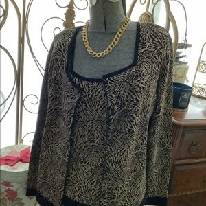 Dana Bachman knit twin set. Large black tan glitter cardigan, X-Large tank. Dry cleaned