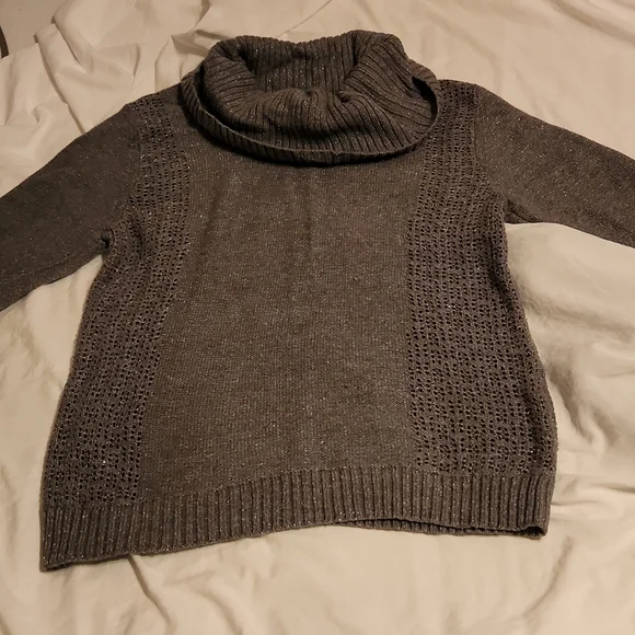 this cozy fun sweater , was never worn. it's sparkly gray makes it for a great winter addition to your closet!