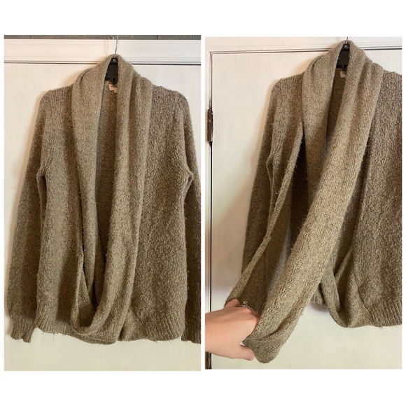 Dark beige sweater with long wrap in the front. Very comfy. Worn once.