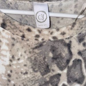 NWOT Women’s Snakeskin Patch Sweater! From Cy Fashion. Size Large, purchased from a boutique as a gift and it’s too big on me. It’s incredibly soft and thin yet very warm. No holes or stains. From a pet and smoke free home. Thanks for shopping my closet!