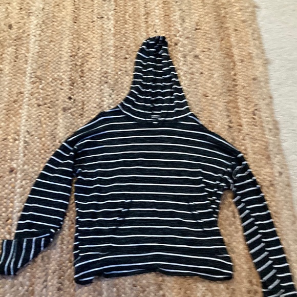 Black and whit striped sweater, pocket, hood