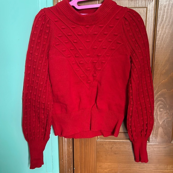 Red sweater that’s super cute and comfy I usually wear a small to medium and this fits me perfectly so the XS is a little misleading.
