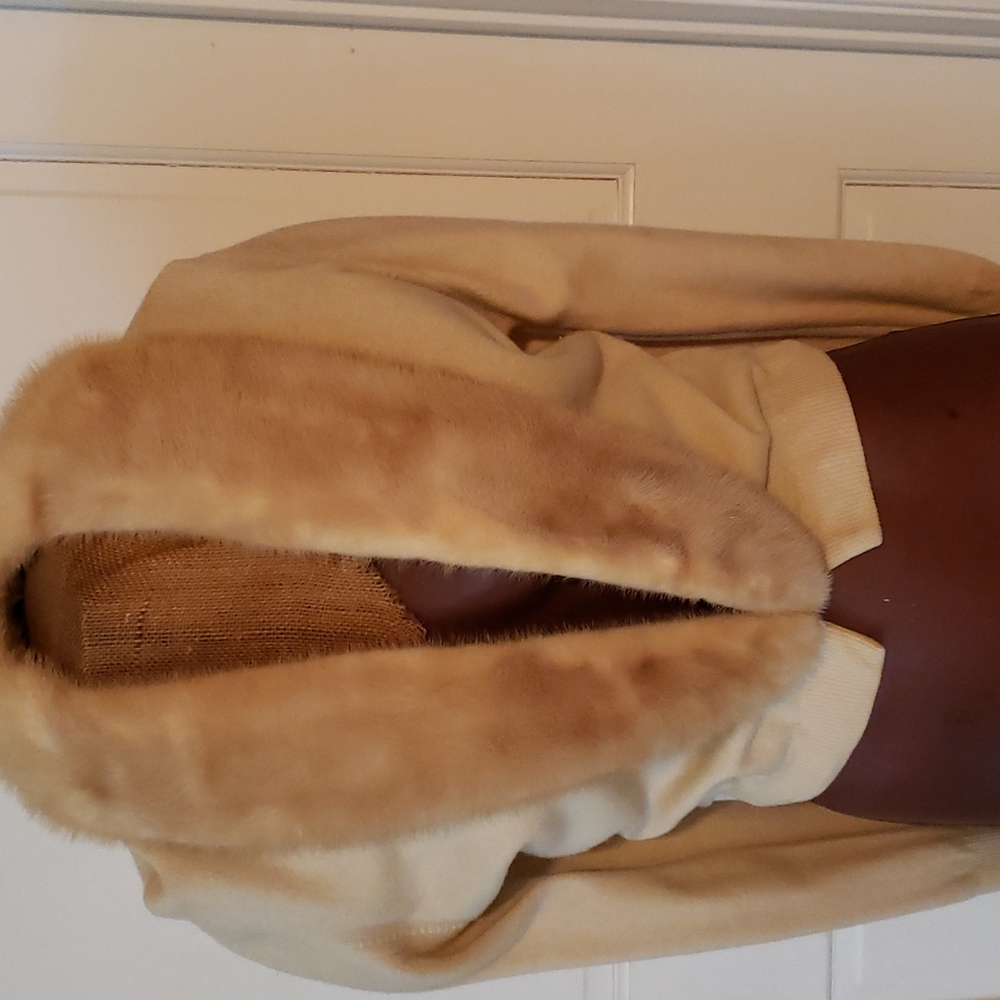 Vintage sweater with removable fur collar, button on cuff of sleeve