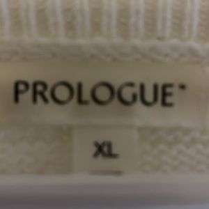 Prologue, XL, cream sweater with super cute lines, and cableknit design in sleeve! Very comfortable!
