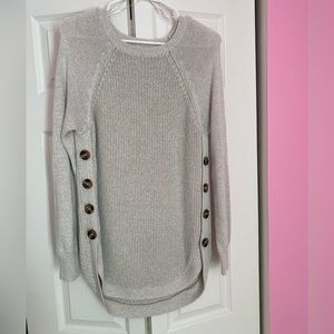 Tan sweater with faux buttons on the side. Great with jeans or leggings