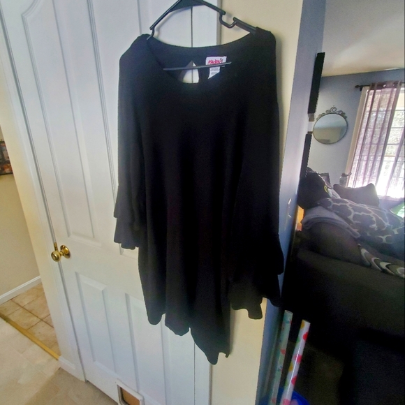 madrags long sweater. could easily wear with leggings and boots as a dress. three quarter, double belled sleeves.