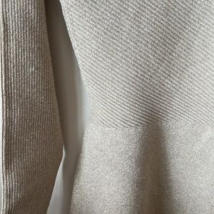 V neck and back metallic gold sweater peplin waist /nylon rayon polyester metallic wool machine washable never worn