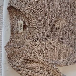 quarter sleeve lt. tan/ champagne color edges, casual wear, can be worn with or without tank underneath. cute front pockets. sz. small but stretchy.