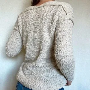 Super cute and comfy sweater! Great condition and no flaws. Color is an off-white cream color!