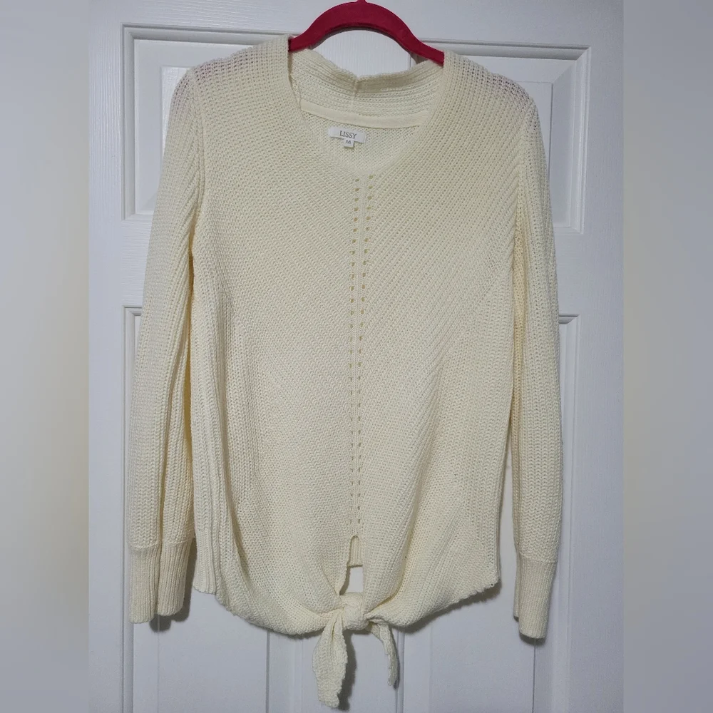 cream sweater with tie-front. size med
