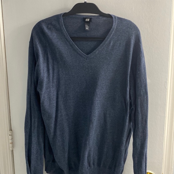 Long sleeve v neck blue sweater