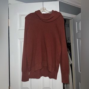 very cute, turtleneckish, flowly neck sweater. it’s very pretty and lightly worn, in good condition -missing size tag but it is an XL!