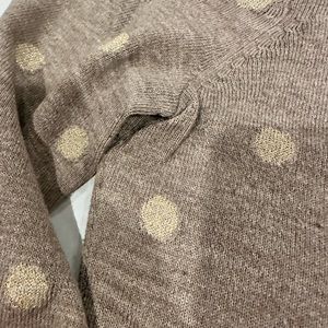 New York and company sweater, size large. Brown with gold circles. Slight pilling under arms, but otherwise good condition.