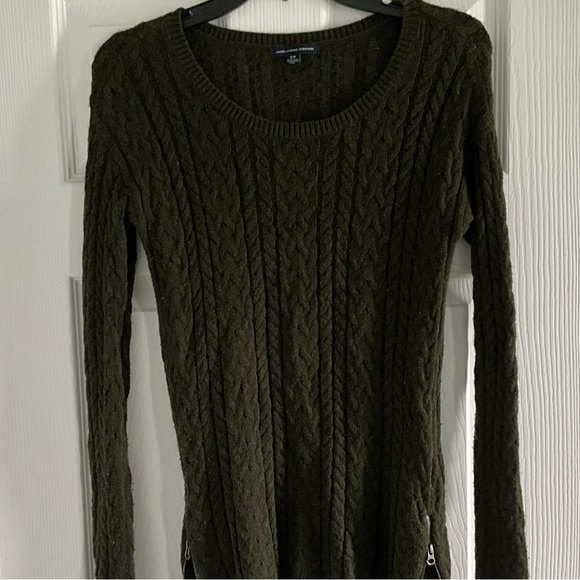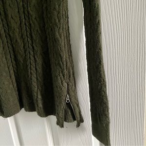 American Eagle long sleeve cable knit sweater with zipper detail on each side at the bottom hem, size medium