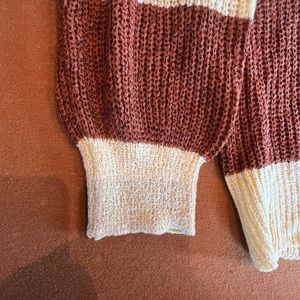 Cute red and cream sweater in a women’s size large! Never worn and in great conditions. Still has tags.