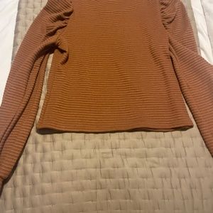 Light brown sweater. So I cropped. Soft and thick material ribbing with puffy shoulder accent