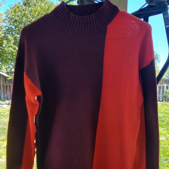 Double colored 100% polyester sweater, machine washable. Like new condition.