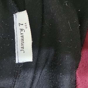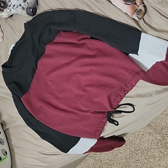 black, red, white sweater is very lightweight thin material better for slight windy days. very comfy.