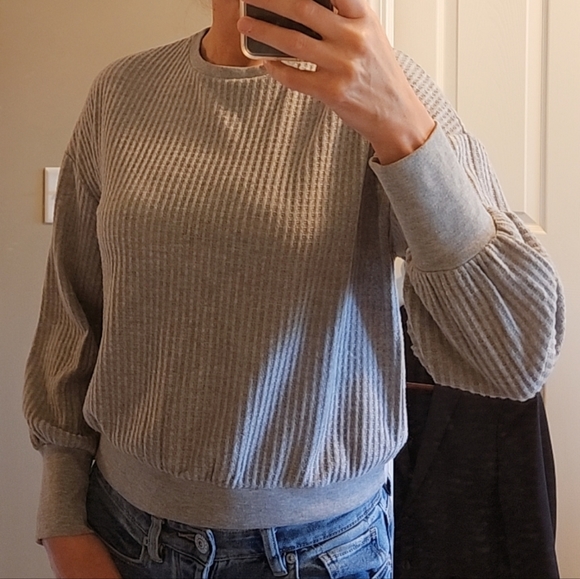 size small sweater with puffed sleeves. worn once and dry cleaned.