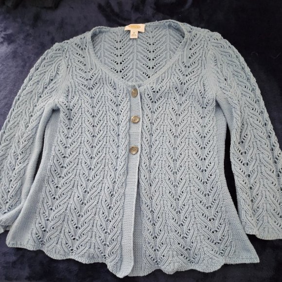 Light blue button closure with flared bottom by Talbots