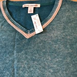 Autumn cashmere, new with tag, size m, v neck sweater. The sweater is a little more turquoise and gray than the picture indicates.