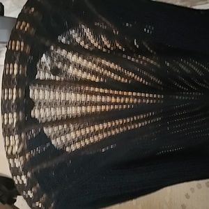 Black, open weave, open front, 3/4 length sleeve, longer in front