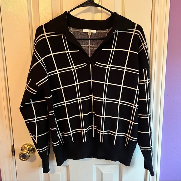 V neck w/ collar sweater Black & white pattern Soft & thick material Only worn once