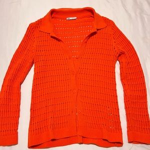 Orange button down zara mesh sweater perfect for layering! Never worn but took the tags off years ago when I bought it.