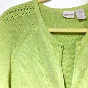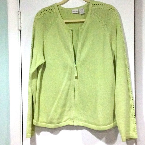 Zipper front sweater in lime green l pit to pit: 22” l length: 26” both sleeve & sweater l knit design down sleeve