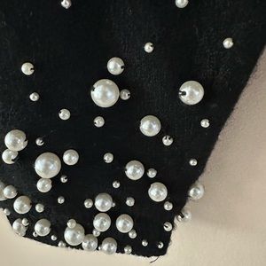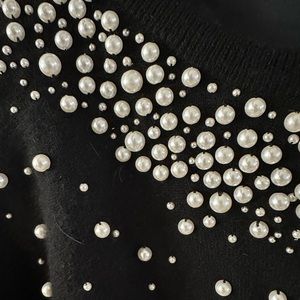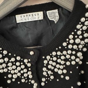 Black button up sweater with pearls with shoulder pads