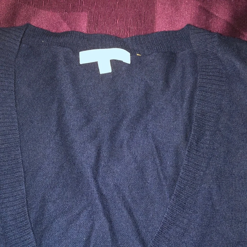 Super sophisticated yet comfy cashmere sweater by 7. Almost new. It’s soooo soft. The low cut feature provides you versatility to dress it professionally with a collared shirt under or sexy showing beautiful cleavage 🥰