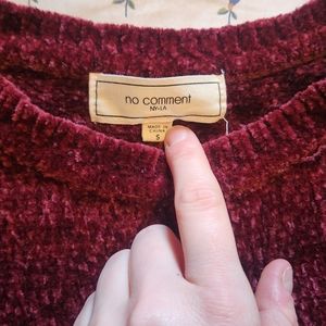 No Comment NY & LA sweater from Boscovs. SOOO soft! love this sweater. excellent condition. see the picture of the unique rippled cut at bottom. smoke free home. burgundy color