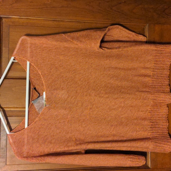 salmon color,3/4 length sleeve, size large sweater