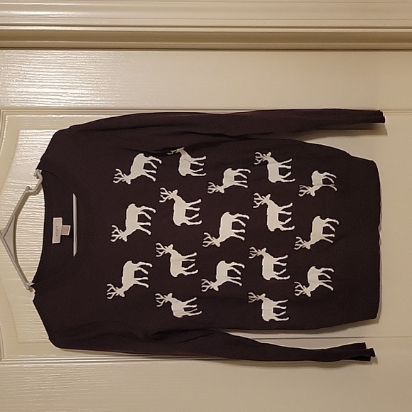 Brown crew sweater with white reindeers
