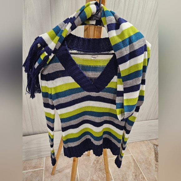 Grane sweater and scarf. Size Medium. Sweater has small snag on back. Comes from a dog friendly home